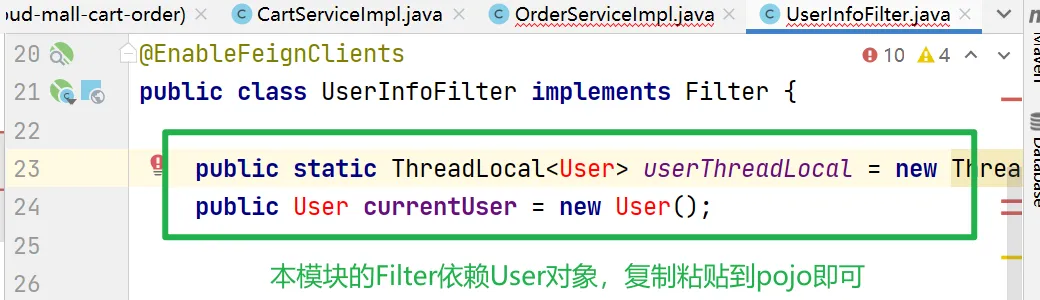 这里保留意见,而且这里filter每个模块都一样,都是过滤出用户信息,为何不直接放在公共模块,是不是这里只是比较特殊,每个模块其实有些项目不止用到用户信息过滤,还有其它信息,所以每个模块需要一个自己的过滤。。。