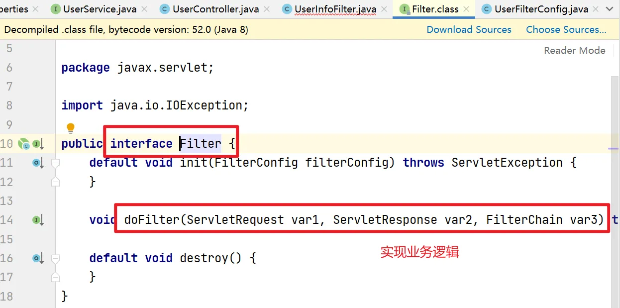 - 首先进入filter,执行相关业务逻辑