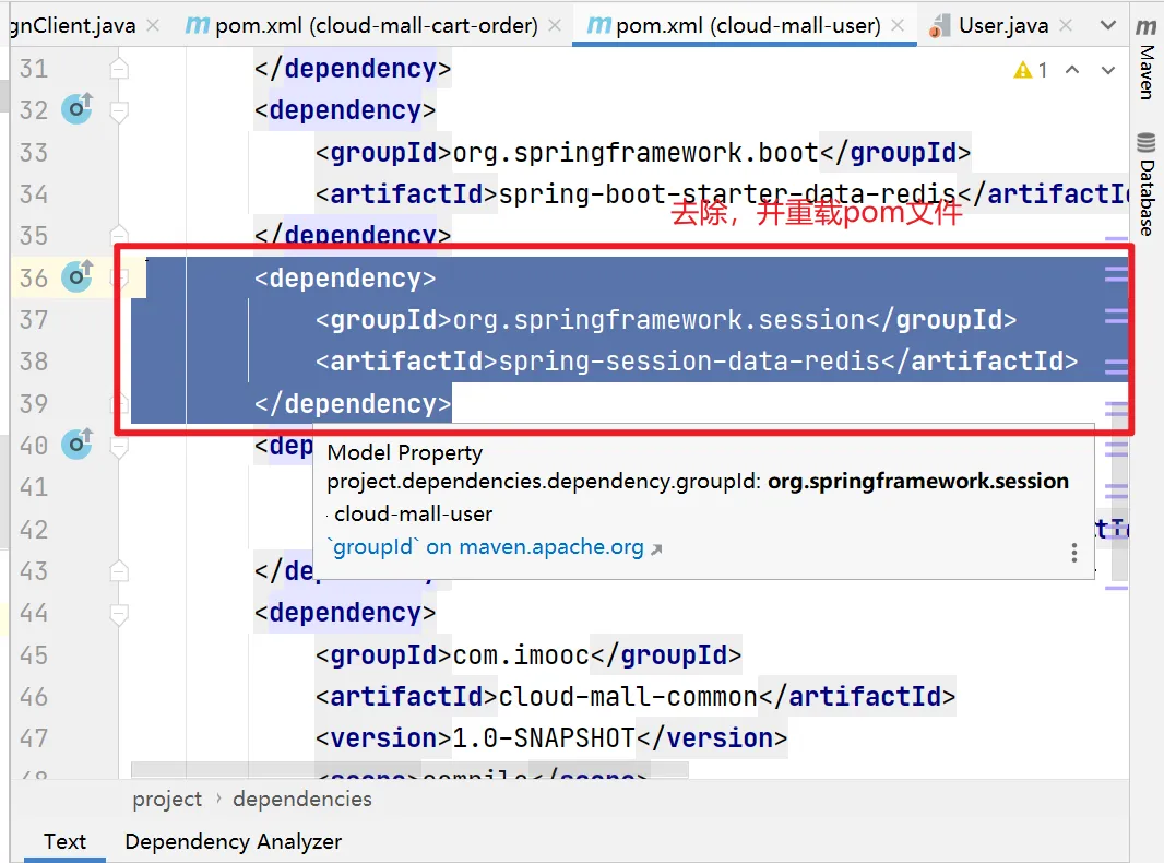 删除依赖配置注解后,由于每个模块是独立服务的,所以需要Filter,将用户模块的Filter直接复制过来即可生效。。。