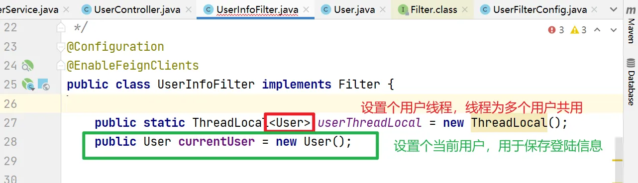 public static ThreadLocal<User> userThreadLocal = new ThreadLocal();