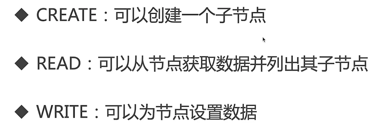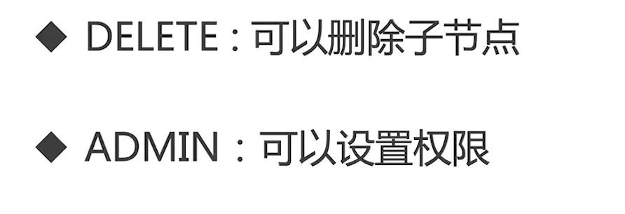 权限,就是指那些通过权限校验后,才可以被允许执行的操作,在ZK中,对数据的操作权限分为以下五大类:create,delete,read,write和admin
