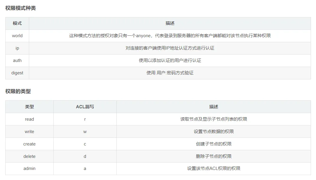 ACL (Access Control List),Zookeeper作为一个分布式协调框架,其内部存储的都是一些关于分布式系统运行时状态的元数据,默认情况下,所有应用都可以读写任何节点,在现如今复杂的网络应用中,这很明显不太安全,任何应用都会有一些用户权限,来保证系统的安全访问,所以,Zookeeper也通过ACL访问控制机制,来解决访问权限问题。