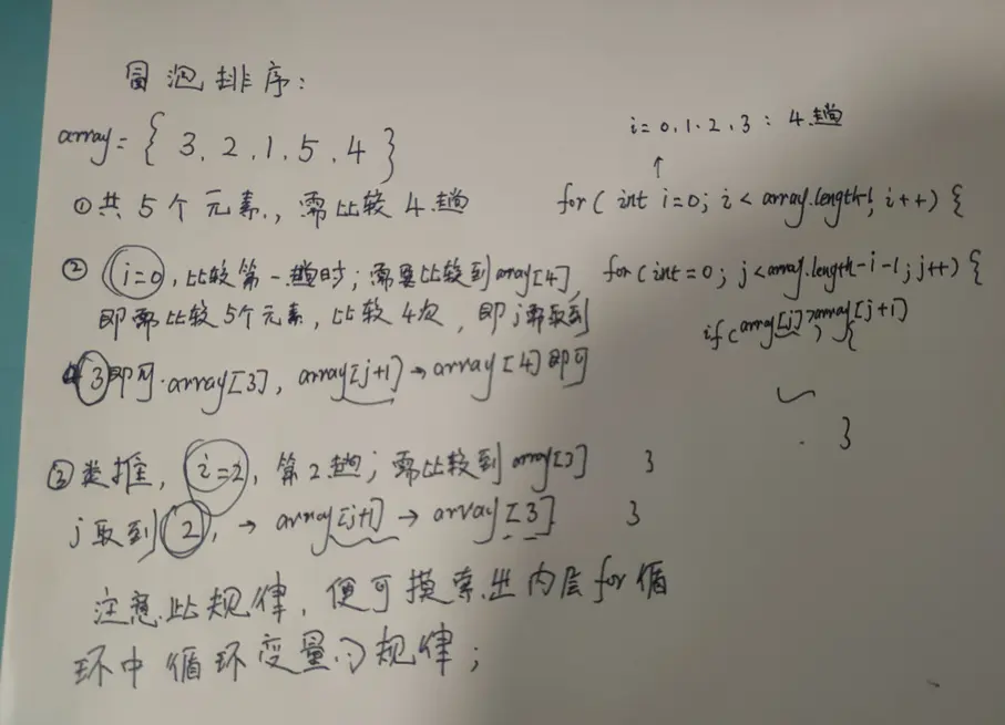 // 如i=0即第一趟时,需要取到数组的最后一个元素,myIntArray[9],只需j<9即可,即循环变量取到8即可,
