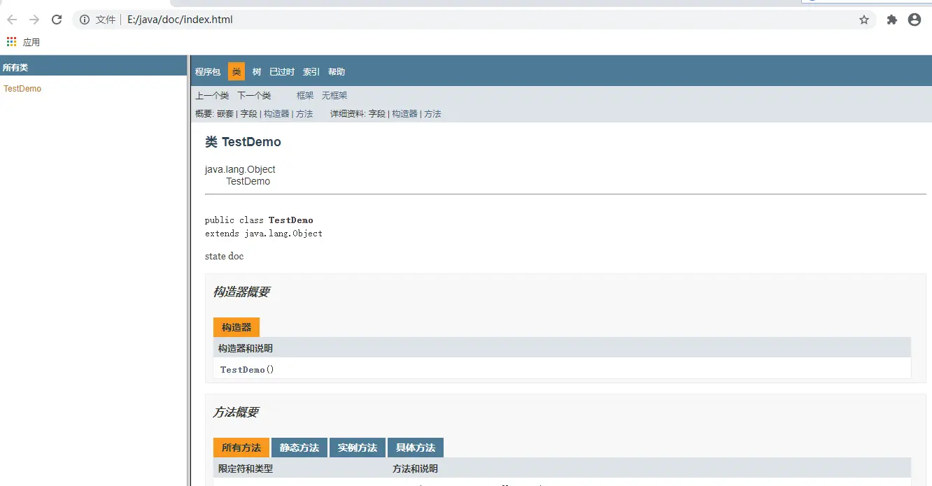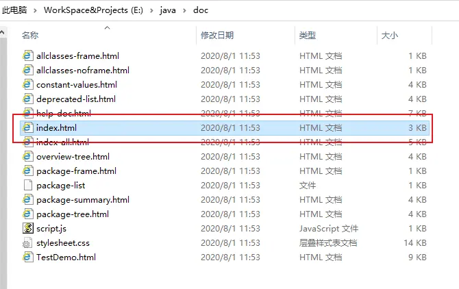 然后,会发现在TestDemo.java文件所在目录下生成了:doc文件夹