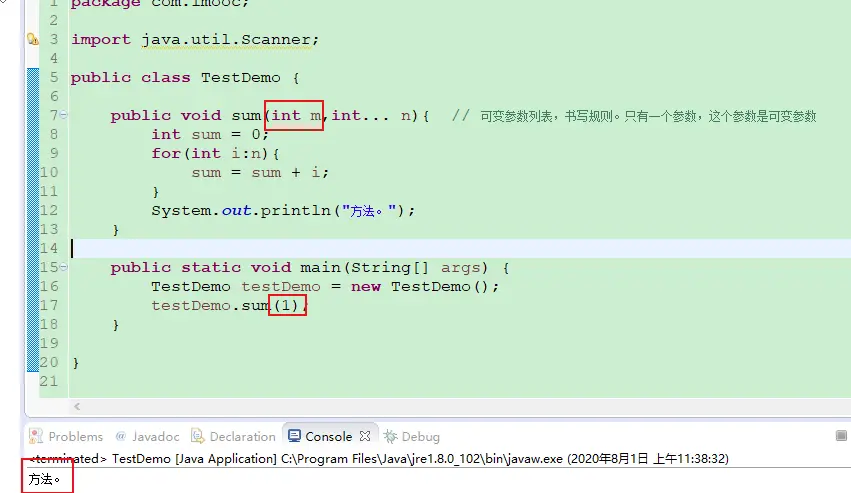 public int sum(int m,int... n){ // 可变参数列表,书写规则。只有一个参数,这个参数是可变参数