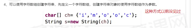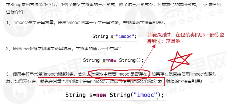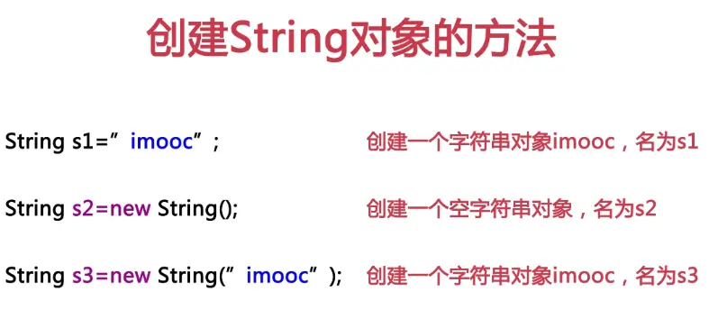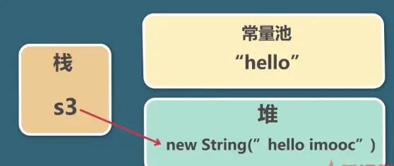 String s3 = new String("hello,imooc"); // 在堆中开辟空间存储对象