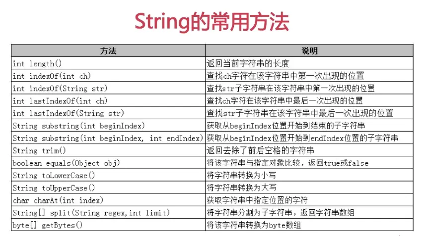 1.String的方法很多,没必要全部一次性记忆,用的时候可以再查