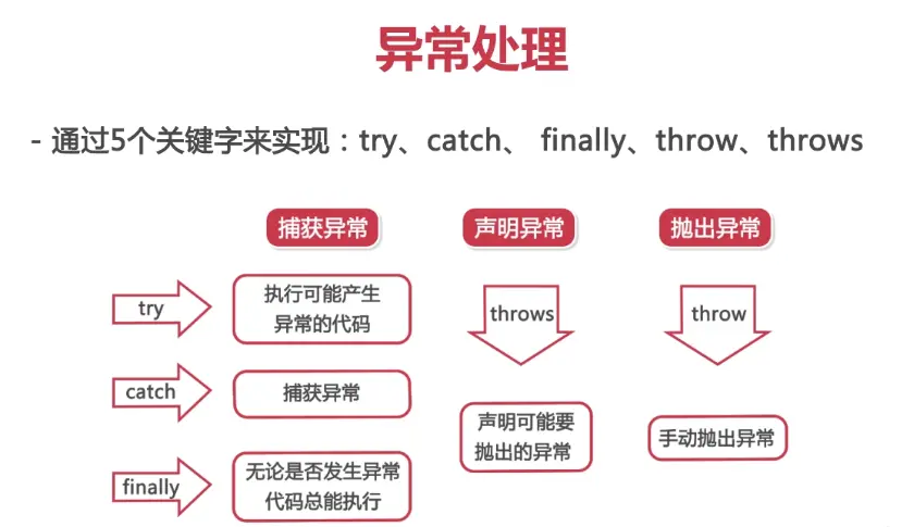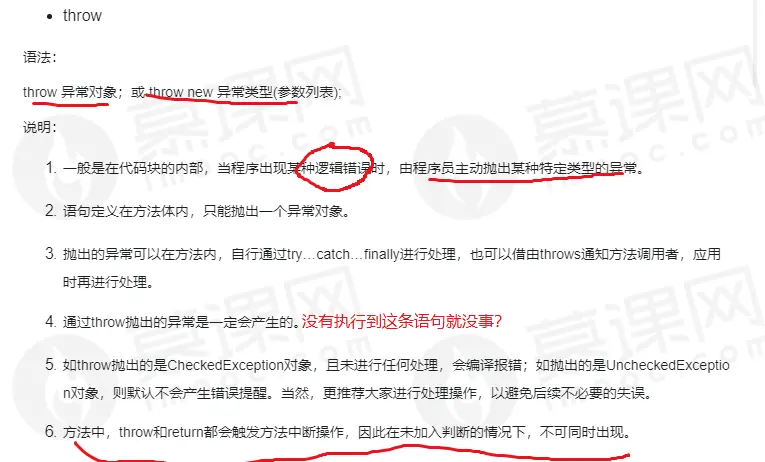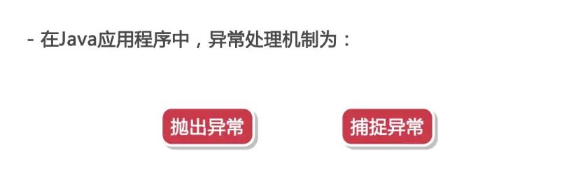 抛出异常:当一个方法中出现错误引发的异常的时候,方法会去创建【异常对象】,并且交付给运行时系统来进行处理;这个异常对象中通常包含异常的类型和异常出现时的程序状态等信息;