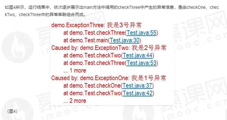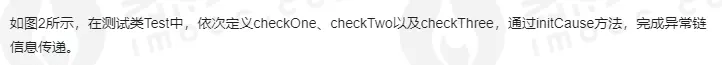 注:在实际应用中,方法调用存在链条,自然可能出现的异常也会存在链条,而保留所有的异常信息而不丢失是很重要的。