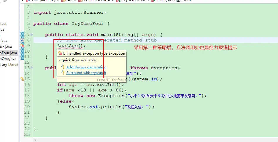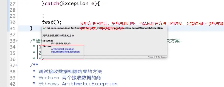2.4) 通过方法注释,让在调用方法时提示应该catch那些异常
