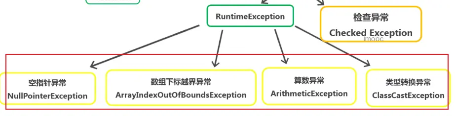 非检查异常:指编译器不要求强制处理的异常,其包含RuntimeException及其相关子类: