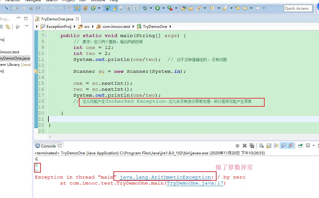 1.如果对可能产生异常的程序没有进行异常处理,程序运行时就可能会产生错误,造成程序中断,尤其是在参杂人为因素的时候,更加无法保证可能出现问题的程序能不出错