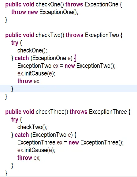 使用Throwable(String message,Throwable cause)的策略解决后的示例: