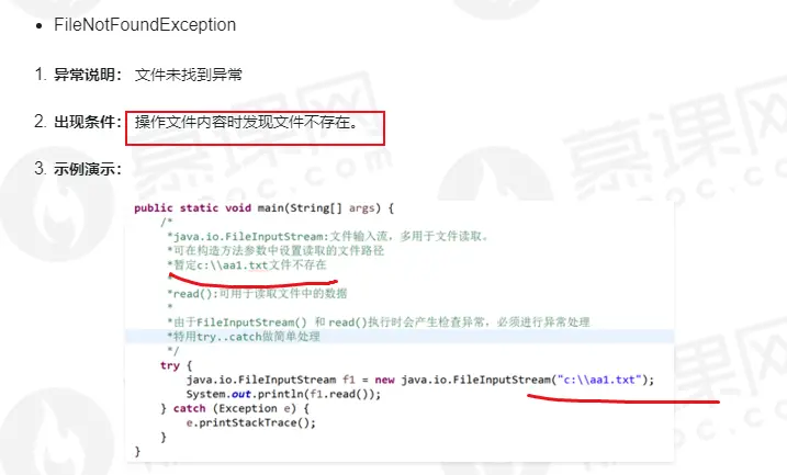 常见的检查异常如:文件操作异常和数据操作异常等,这些异常在程序编码阶段就要求必须进行异常处理( 尚存模糊点 ),否则编译时无法正常通过。