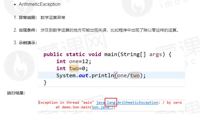 例如下面就是非检查异常的四个例子,Java编译器在编译阶段是不会去检查【非检查异常】的,即在编写代码时可以选择去捕获处理【非检查异常】,也可以选择放任不管