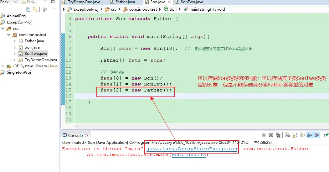 目前可以这样理解,数组声明称申明类型的,其不能存贮父类,但可以存储本类和子类类型的对象。 ** 存疑**