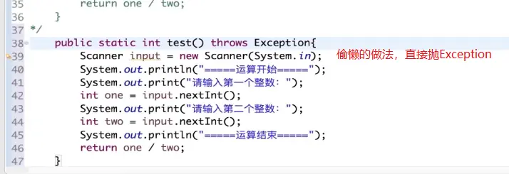 通过前几篇博客可知,可以通过try-catch- finally来处理异常;但当一个方法不愿意处理异常的时候,就可以使用throws关键字声明异常,这样这个方法就可以不去处理可能出现的异常,相当于是“甩锅”给下一位。