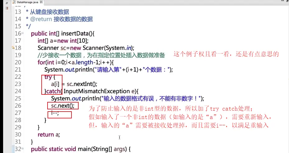 注:输入类型错误时,使用sc.next()去接受这次输入;然后上述程序最后需要sc.close()关闭这个流。