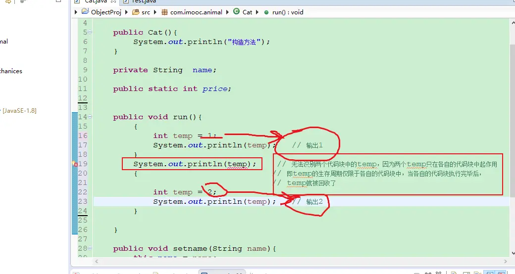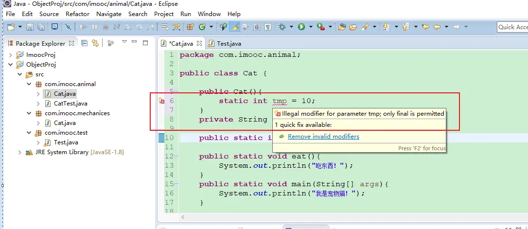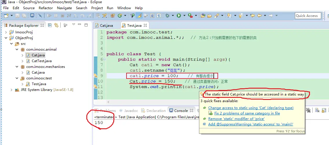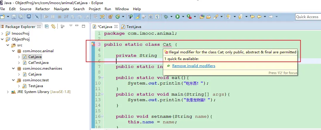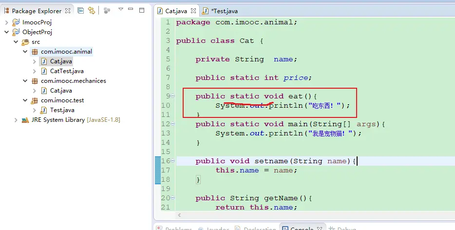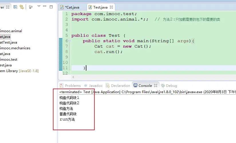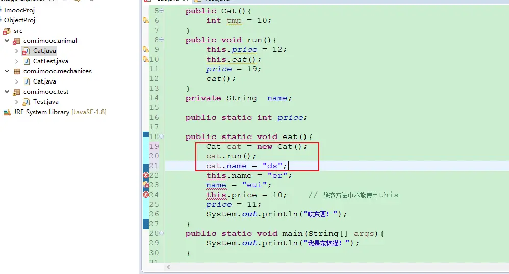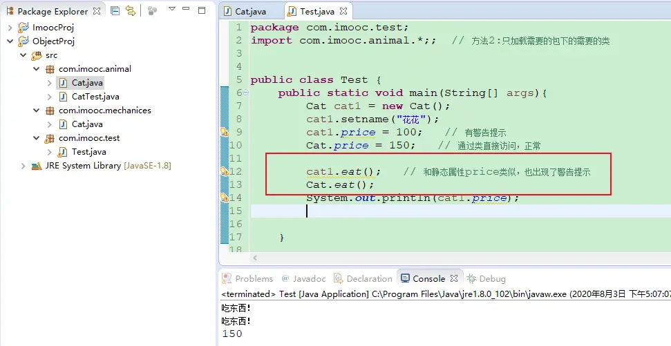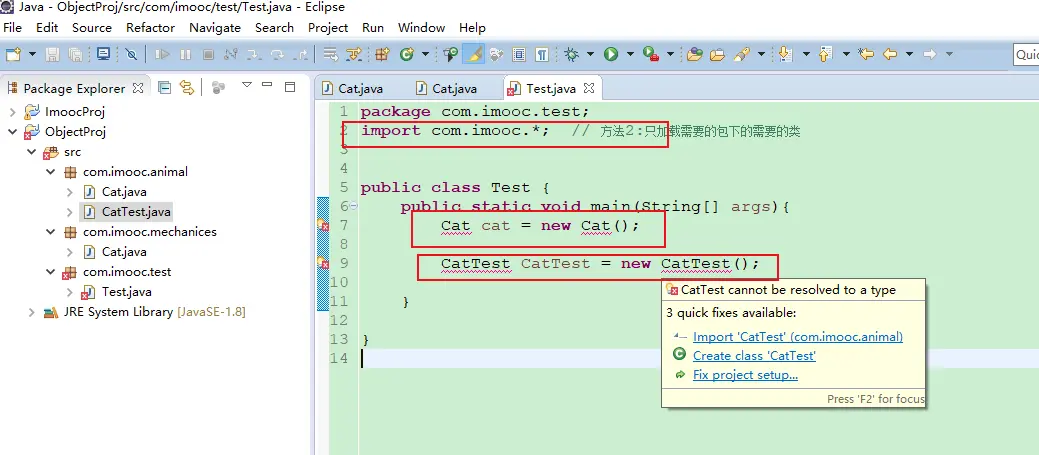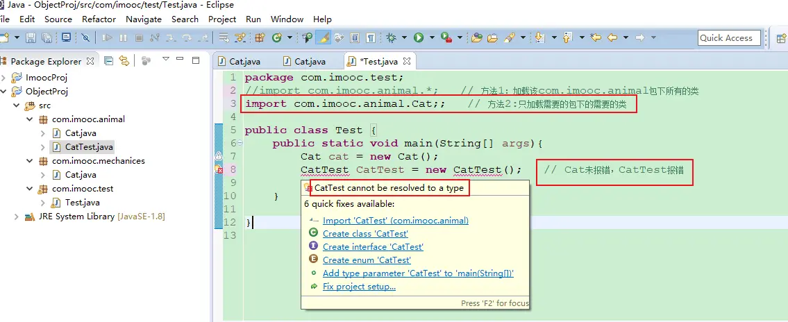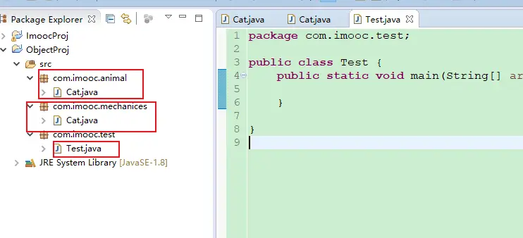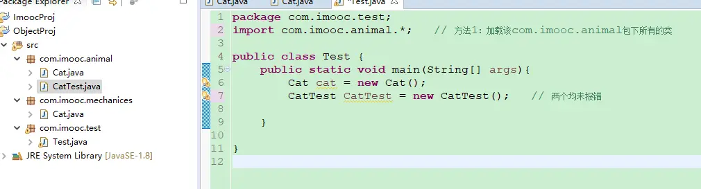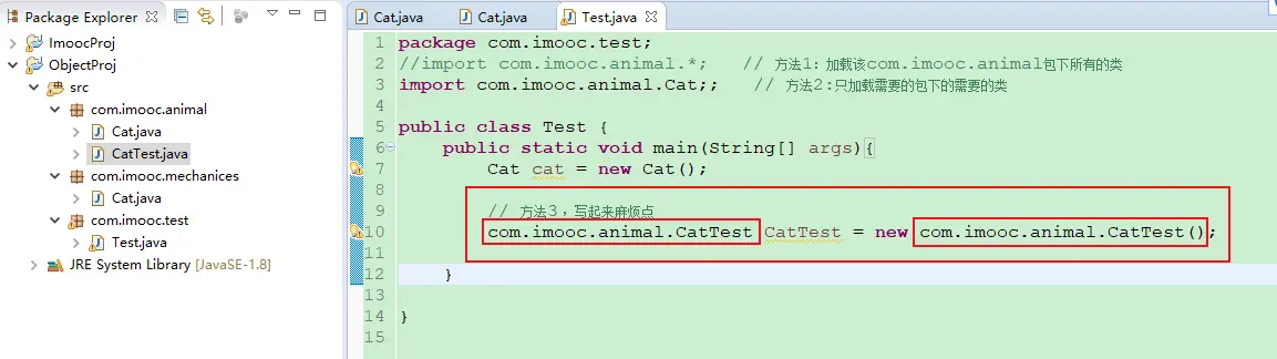 但如果,想访问com.imooc.mechanices包下的Cat类,应该使用全路径的方式调用了: