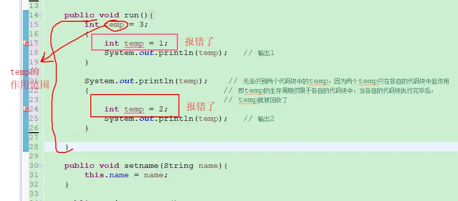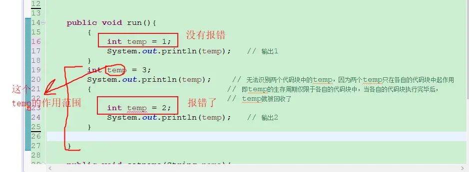 下面两个报错的情况,可以看下报错的情况,以了解变量的作用范围。不能出现重复变量