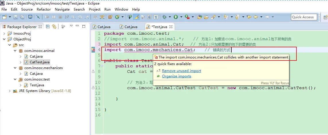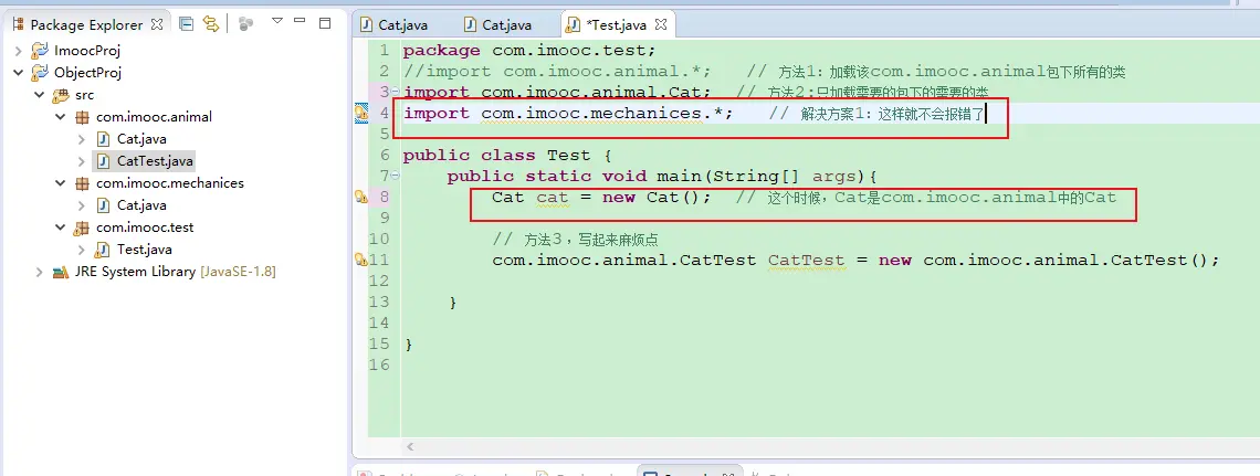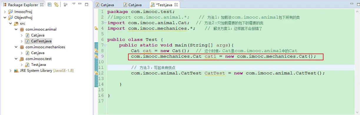 如果想同时访问com.imooc.animal包下的Cat类和com.imooc.mechanices包下的Cat类,应该怎么办?