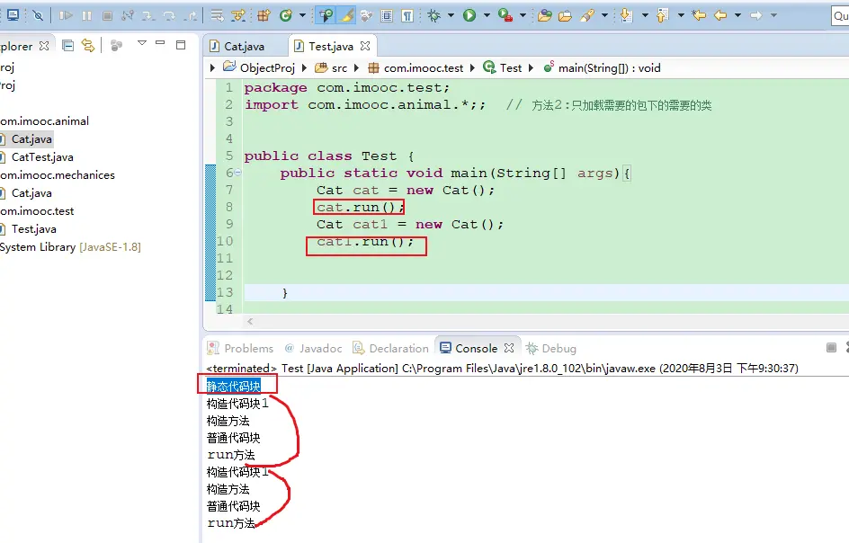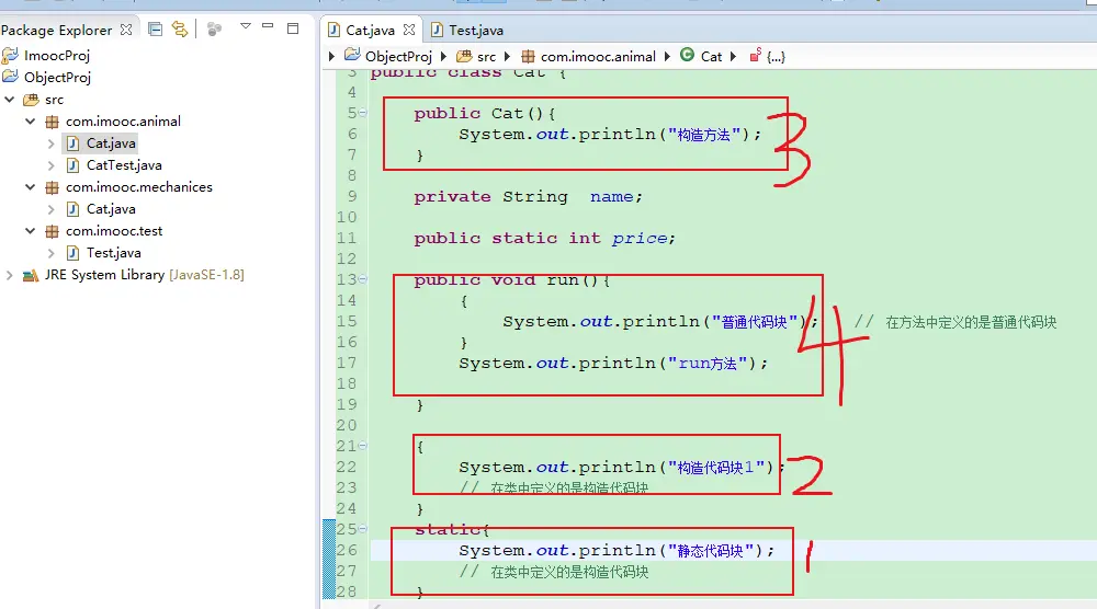 注:(1)无论实例化几个对象, 静态代码块只执行一次 ,构造代码块会执行多次;