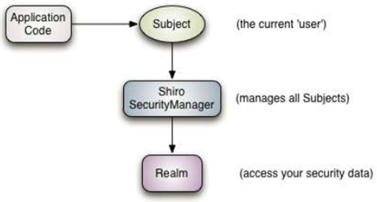 Shiro 概念层架构的 3 个核心组件图:
