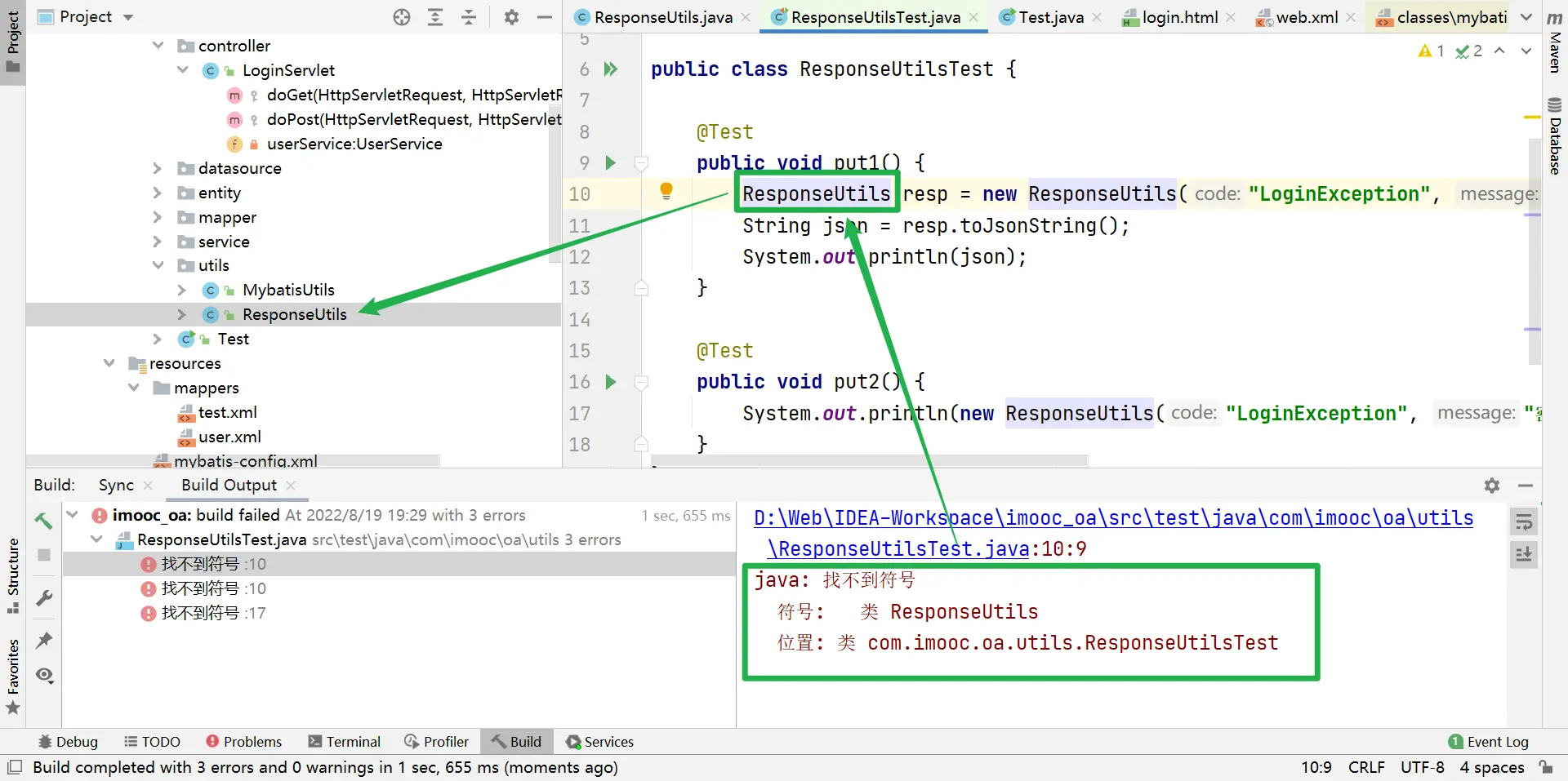 创建子包com.imooc.oa.entity,用于存储数据库的一个个对象 新建User.java类