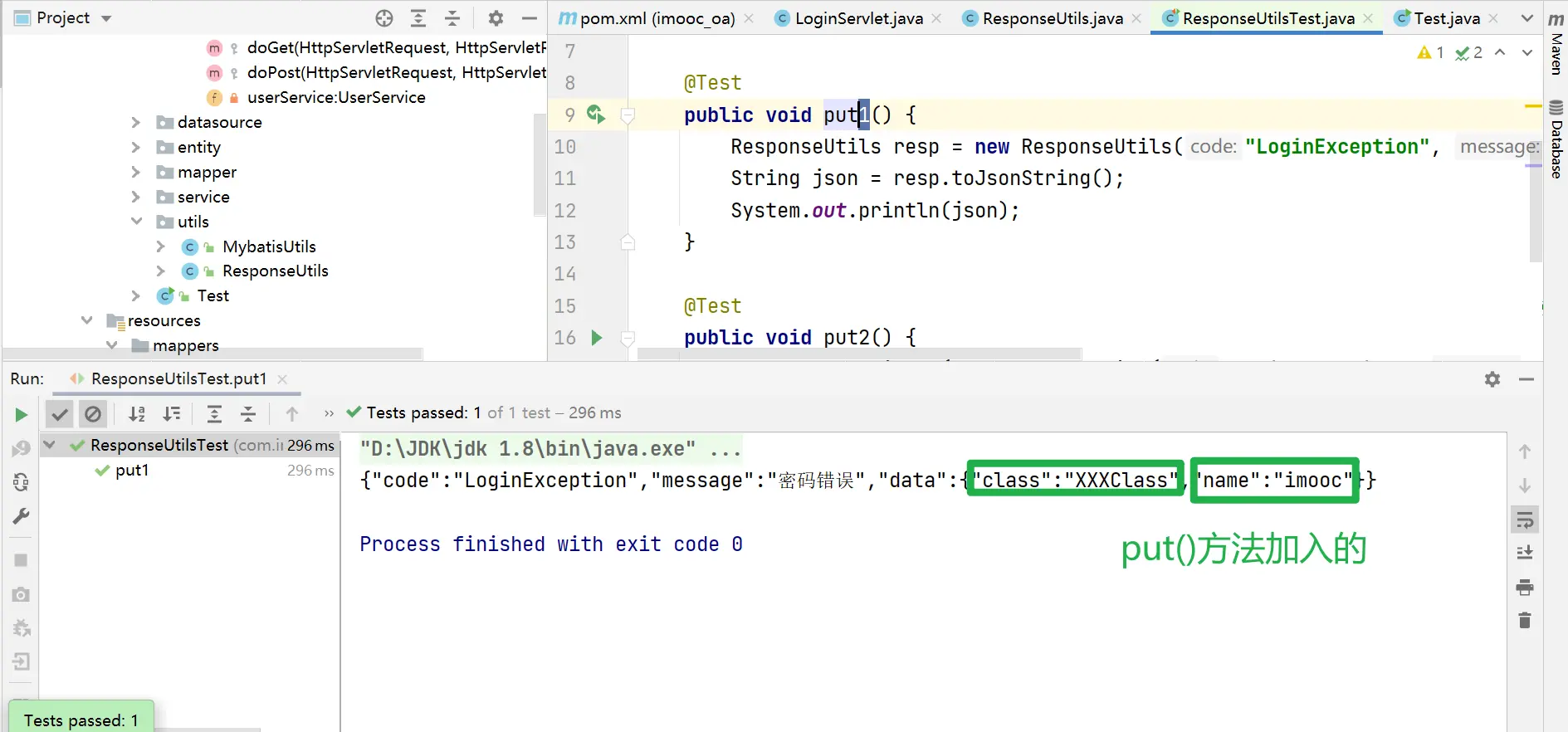 Employee employee = employeeService.selectById(Long.parseLong(eid));得到了员工数据,通过ResponseUtils返回给客户端,只需额外增加put方法即可