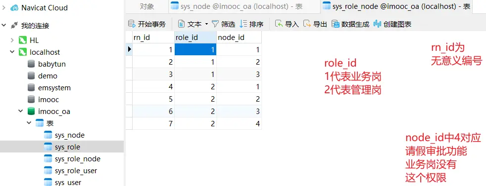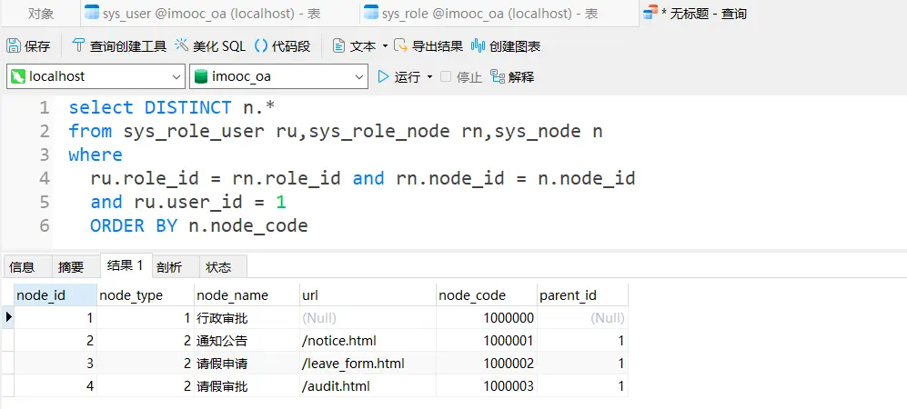 打开navicat数据库,,选择imooc_oa数据库,点击查询,新建查询,将sql文件夹下的sql文件源代码复制粘贴,sql表就创建成功了