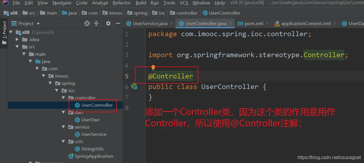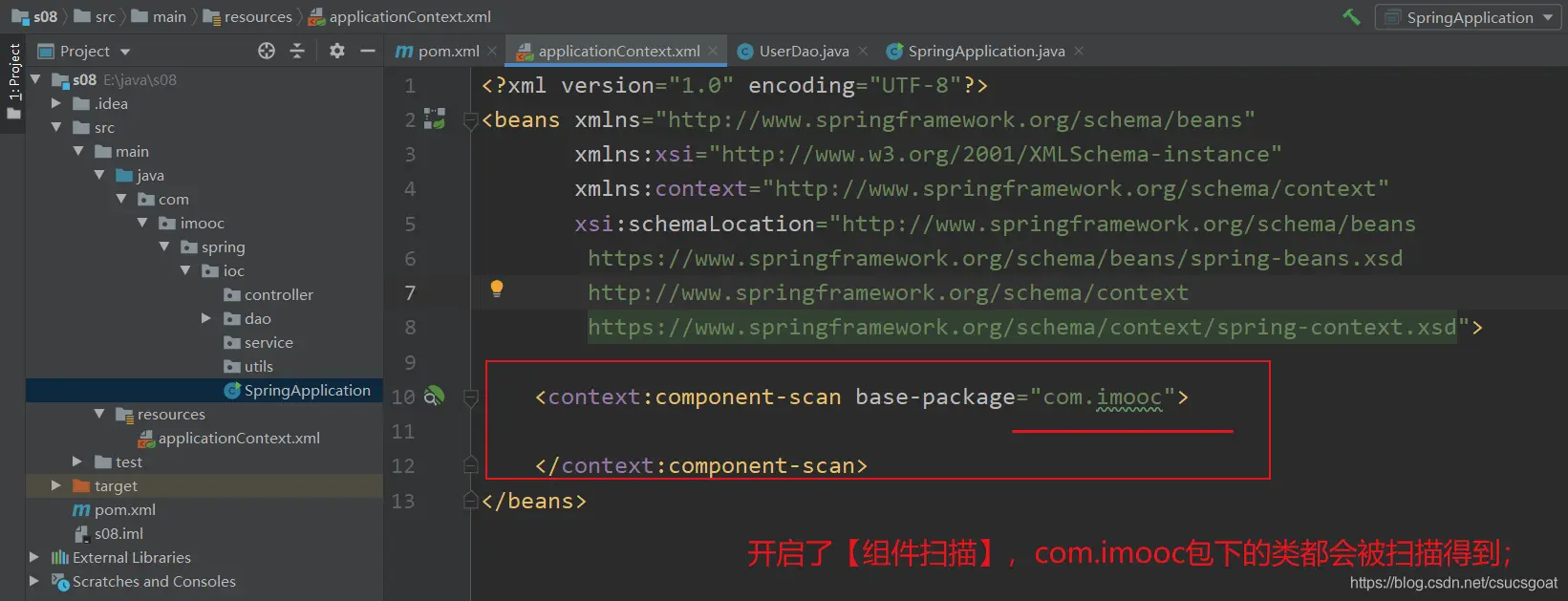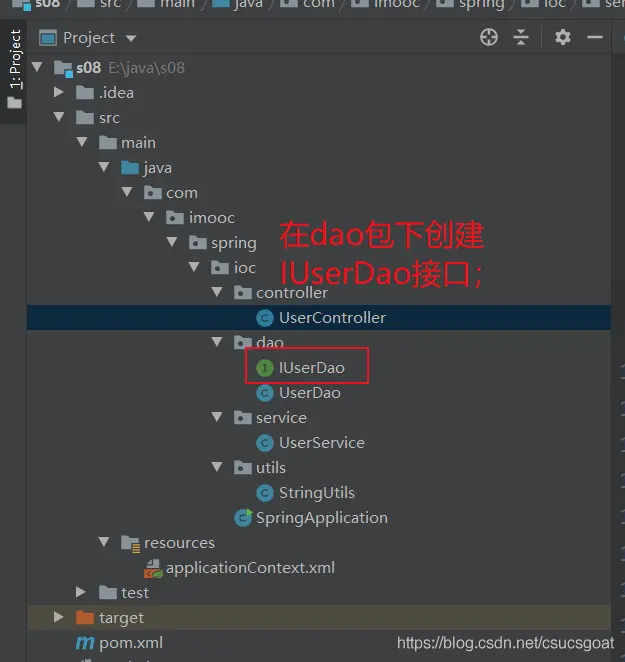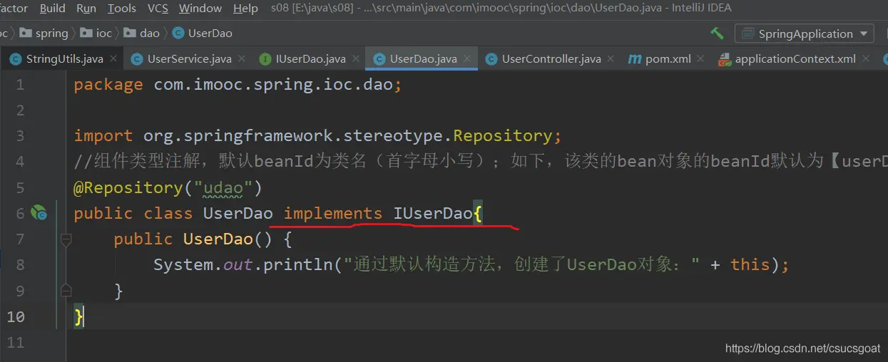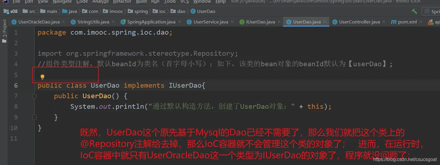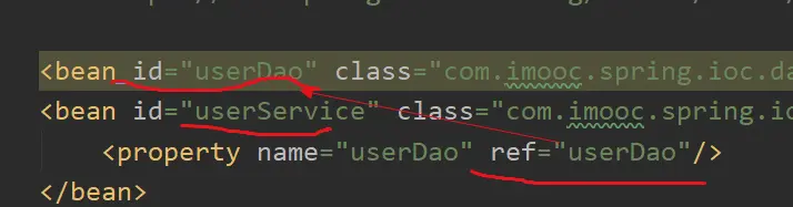 <bean id="useDao" class="com.imooc.spring.ioc.dao.UserDao"></bean>