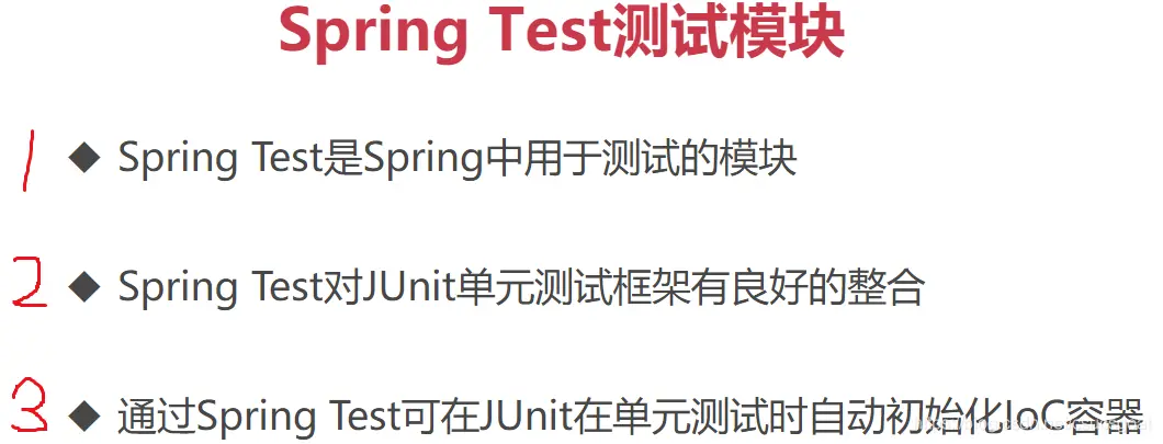 (2) 【Spring Test】在日常开发中,最常用的功能就是【和JUnit单元测试框架进行整合】;
