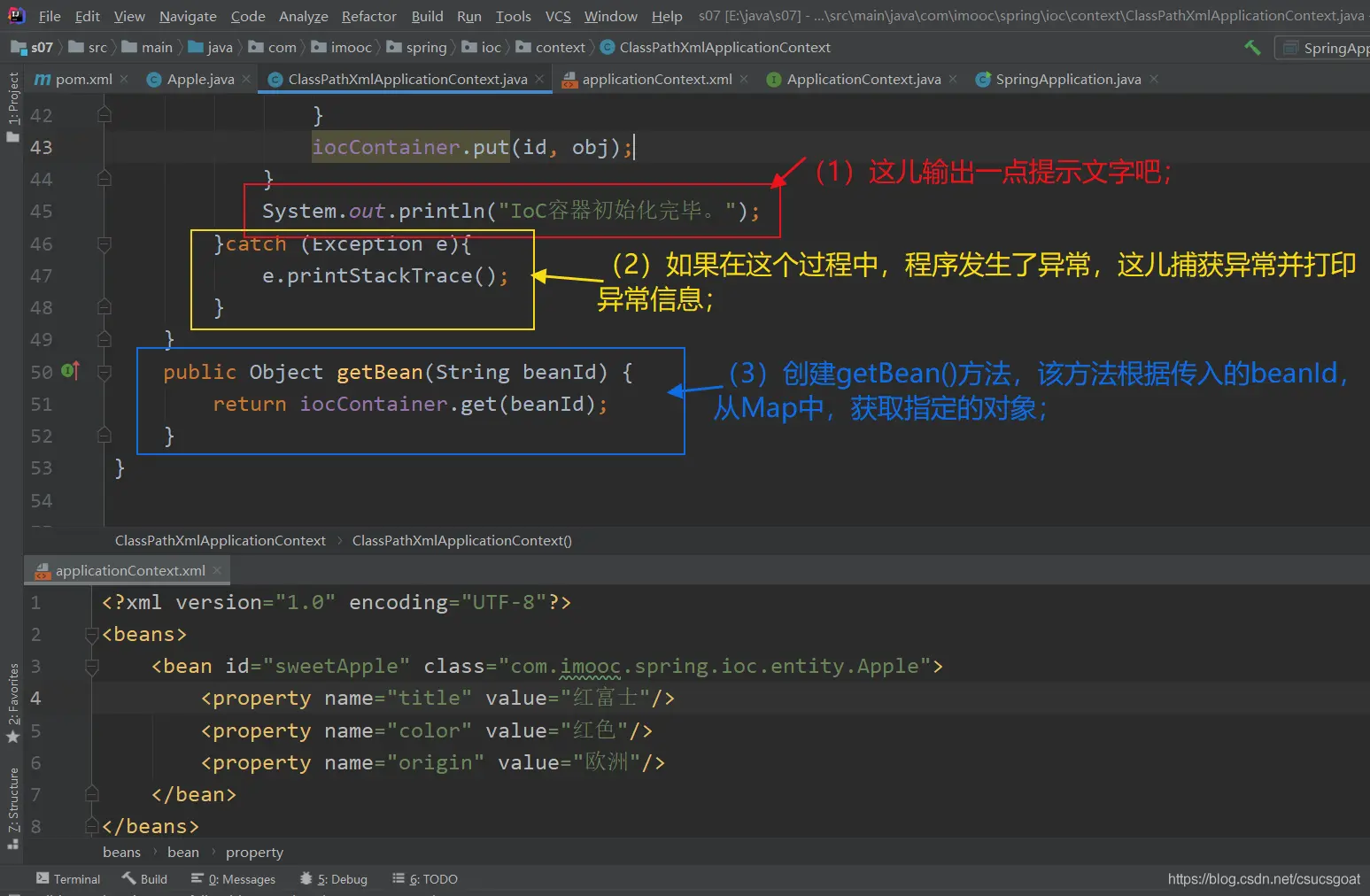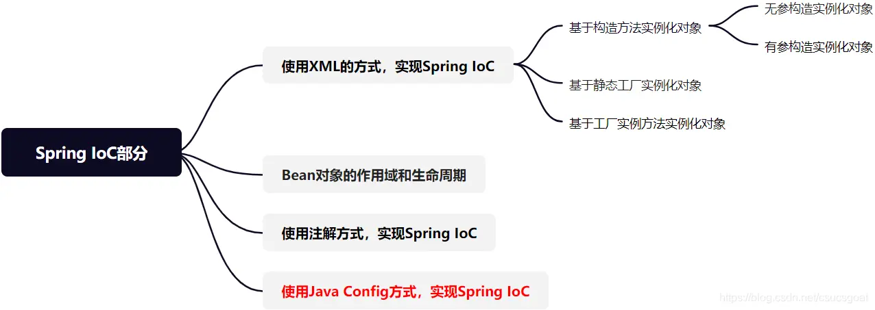(6) 【xml方式,实现IoC】,【注解方式,实现IoC】,【java Config方式,实现IoC】这三者,【遇到需要修改功能的时,需要修改源代码,的特性】依次增强,【开发体验】依次更好;在实际项目中,按需选择。