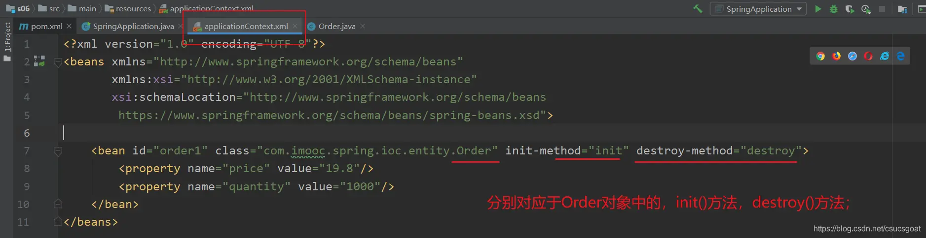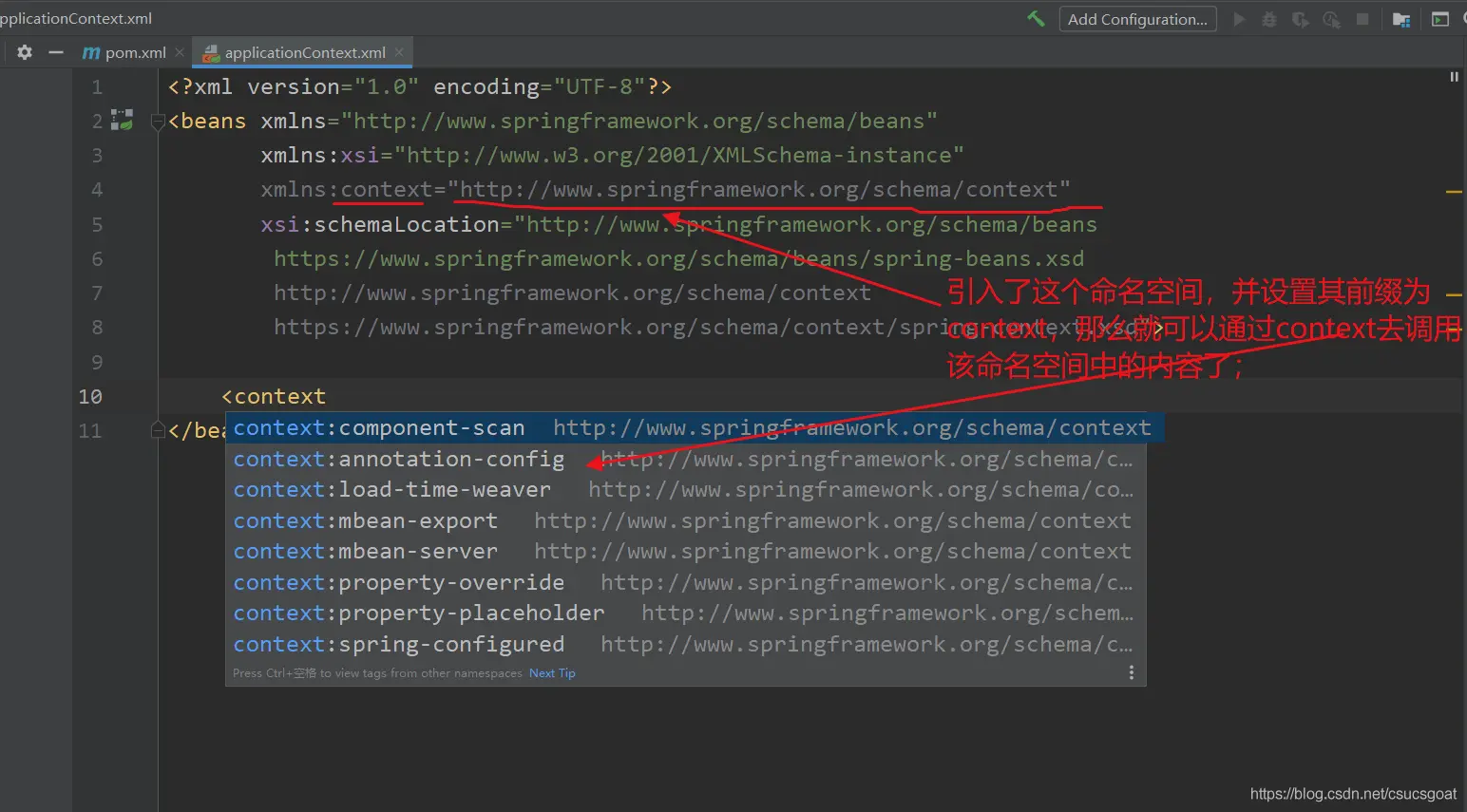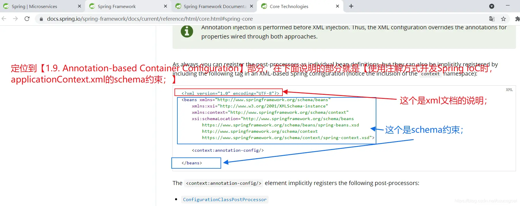 (1) 就是xml的文档说明;spring配置文件的schema约束;