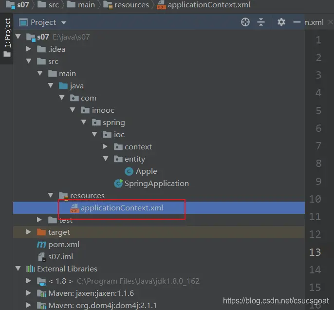 (4)在resources目录下,创建applicationContext.xml文件;