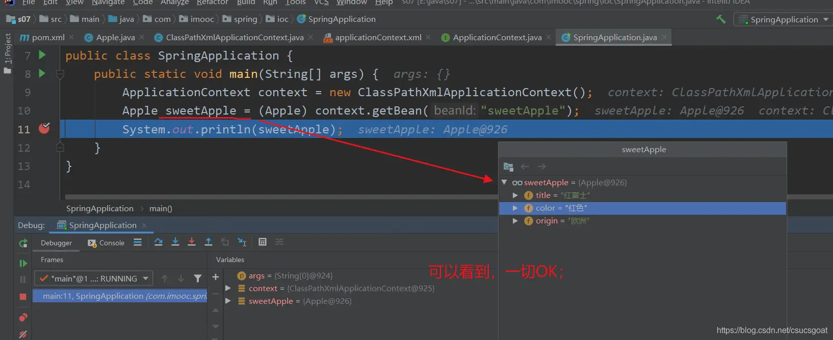 (1) 【new AnnotationConfigApplicationContext(Config.class);】:因为这儿没有xml文件,而是一个Config.java类;所以使用【new AnnotationConfigApplicationContext(Config.class)】(意思是,基于注解配置的应用程序上下文),传入的参数是Config.java这个类;这样有,就能完成【使用Java Config方式实现Spring IoC一】的IoC容器的初始化工作;