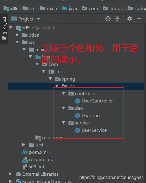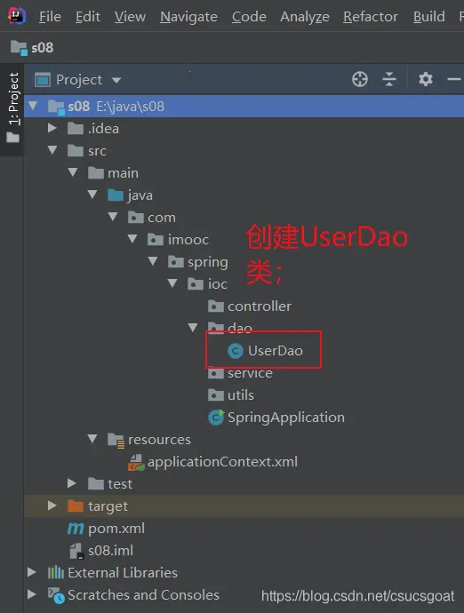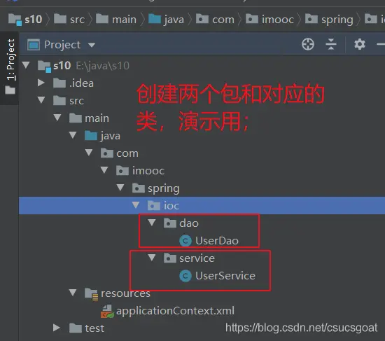 (3)创建UserDao类,UserService类;