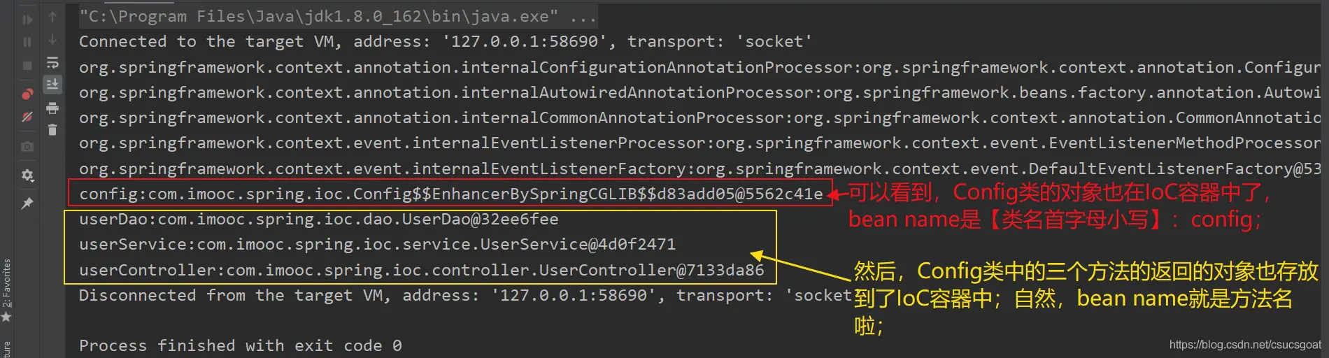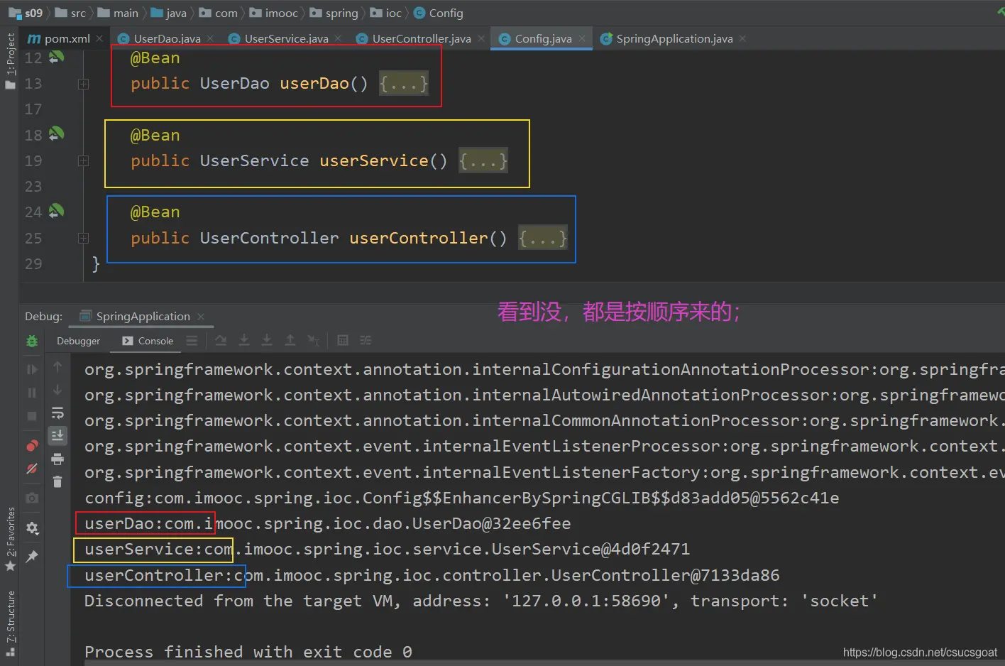 (4) 容器中的对象,是按照在Config类中的前后书写顺序,依次进行实例化的