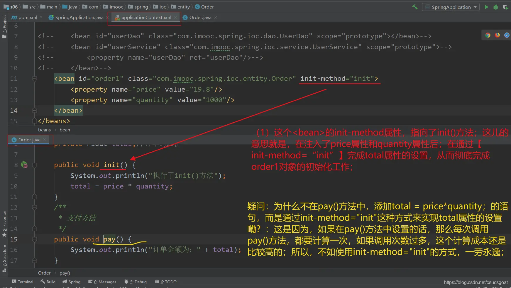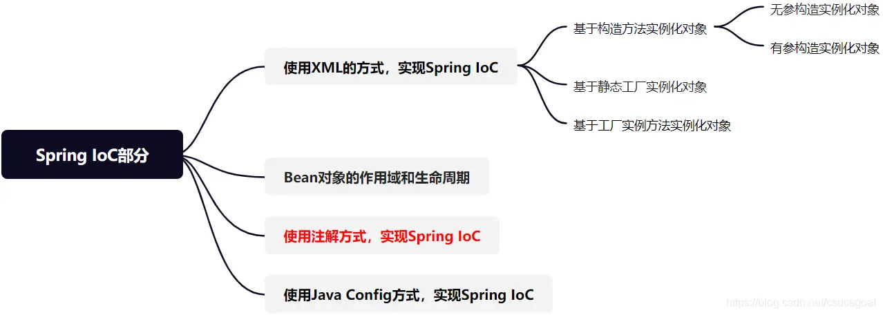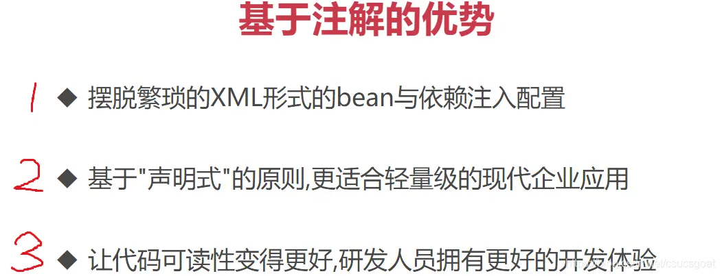 (5) 【xml方式,实现IoC】和【注解方式,实现IoC】更多的是用在大型项目的团队协作中,通过配置文件将每一个功能或模块切分开,然后将切分的模块分配给不同的团队去开发,各司其职;