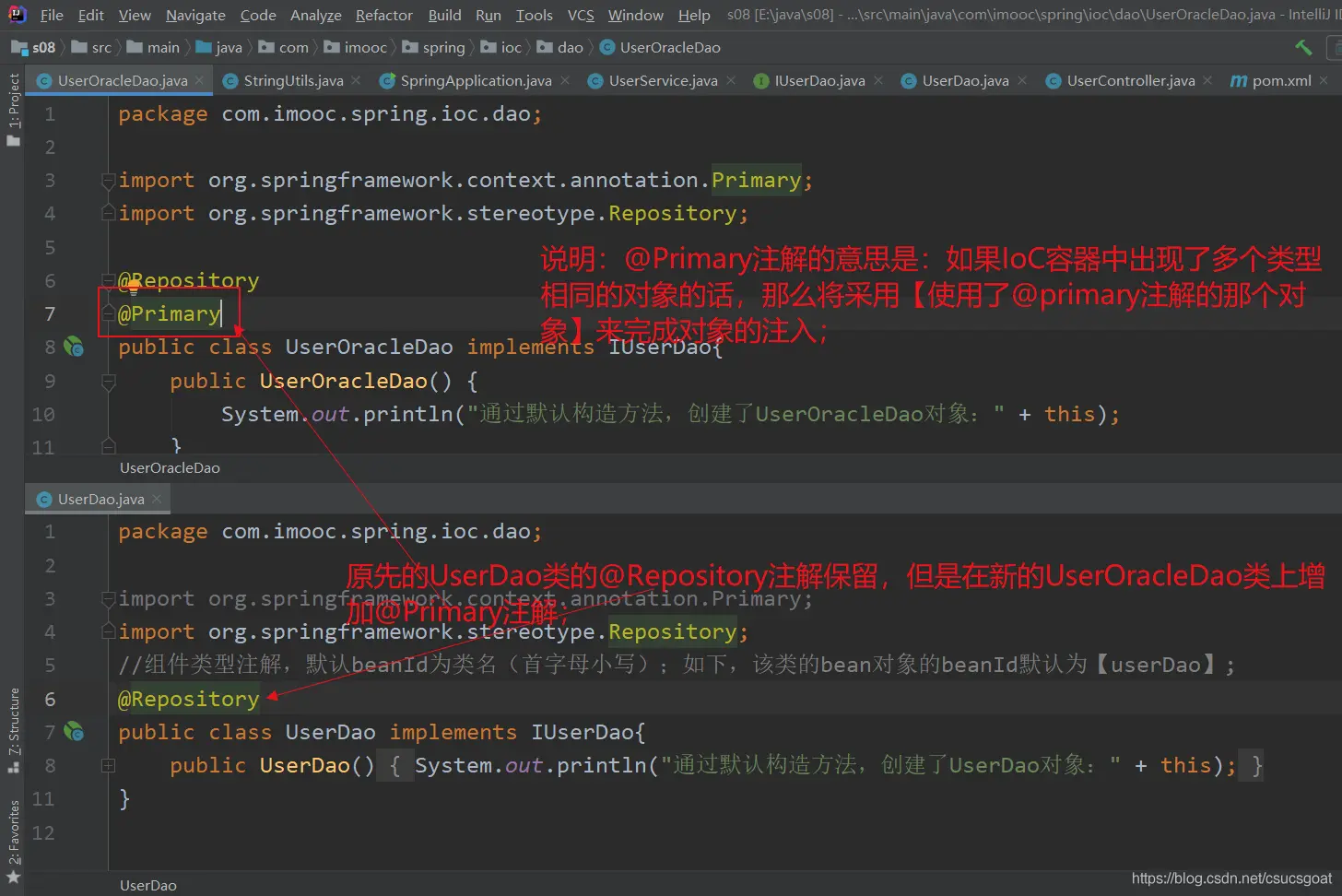 自然,万一沦落到需要按类型注入时候,为了避免【同类型的多个对象问题】我们也是可以在方法上使用@Primary注解的: