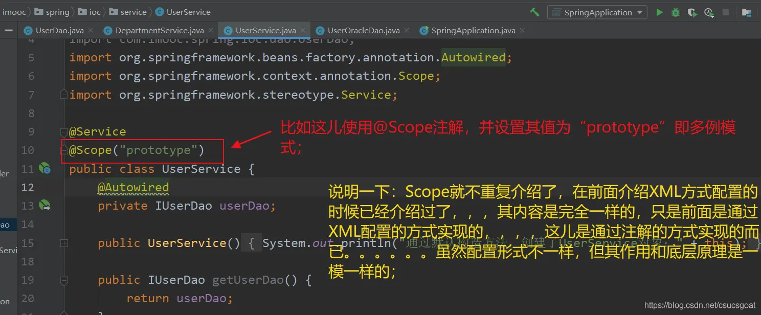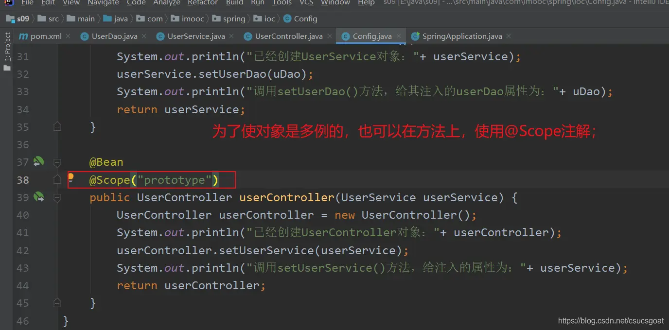 说明2:如果想让某个对象是多例的,也可以在方法上使用@Scope注解