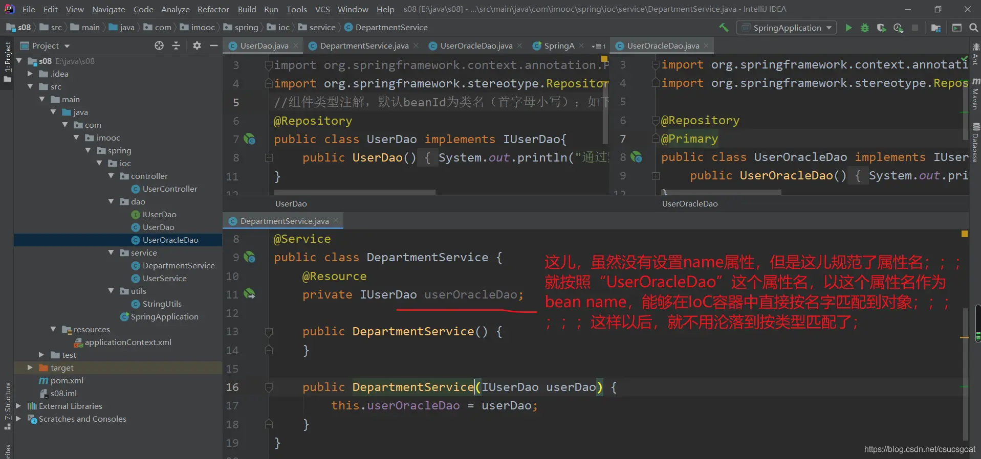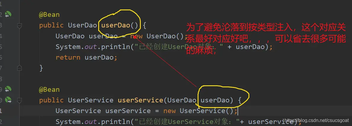 PS:因为按类型注入我们应该尽量避免,所以在方法名和属性名的对应上,我们最好对应好。