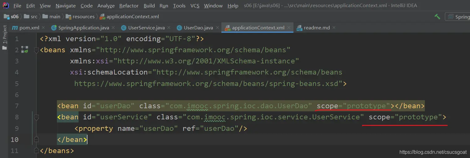 演示【scope=singleton】和【scope=prototype】在使用时的区别;pom.xml: