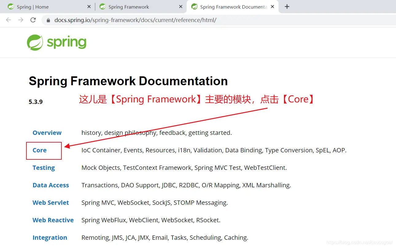 (1) Spring框架中,有一个特殊的模块,Test模块,其专用于系统测试;如下图所示;(在【使用XML方式实现Spring IoC【对象的实例化】:基于构造方法实例化对象,之基于【默认构造方法】实例化对象】中,介绍了下面这个图;)