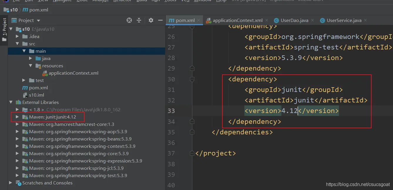 (1) 在pom.xml中 引入JUnit的依赖;