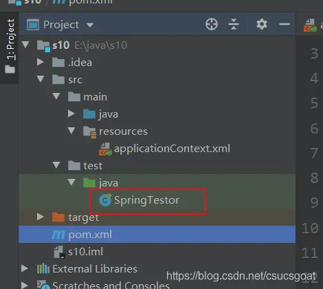 (2)在test包下,创建测试用例类:需要使用到【@RunWith】和【@ContextConfiguration】;(核心!)