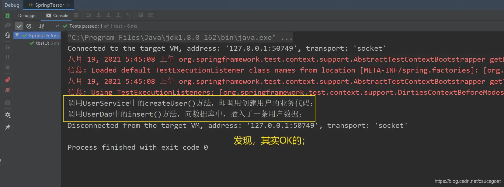 System.out.println("调用UserDao中的insert()方法,向数据库中,插入了一条用户数据;");