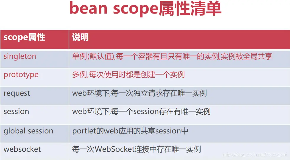 (0) singleton和prototype比较基础和重要; request,session,global session,websocket目前仅作了解即可。
