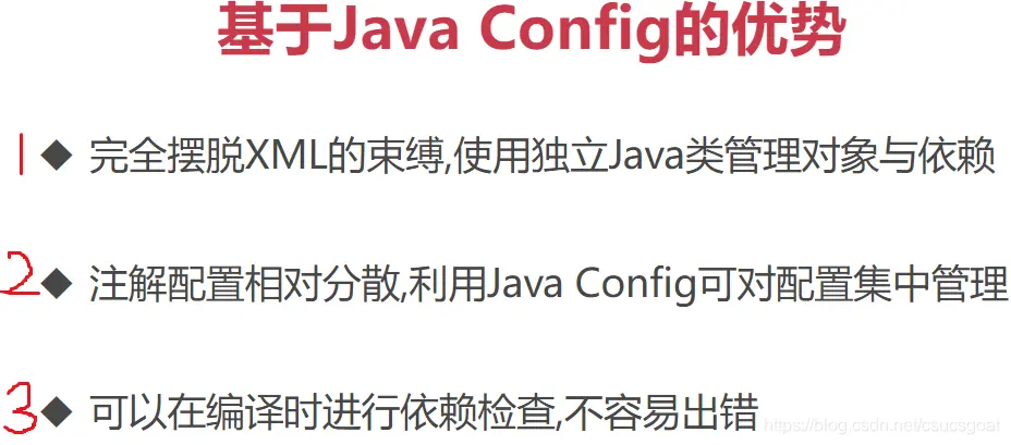 (2) 【java Config方式,实现IoC】这种方式的好处:在实际使用时,因为都是java代码,如果写错了,IDEA马上就能给出错误提示,即在编译阶段就能及时发现问题。