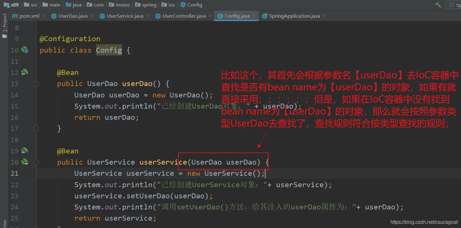 案例:【java Config方式,实现IoC】:注入对象依赖;